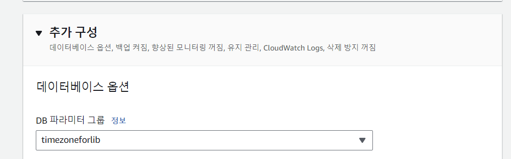 여기서 DB파라미터 그룹을 아까 만든 파라미터로 변경해주세요.