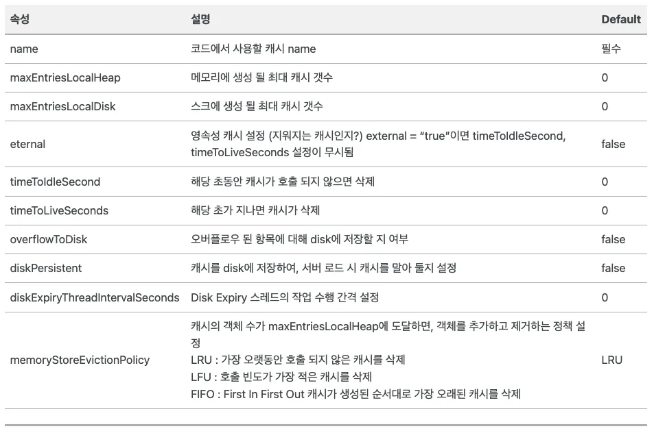 - 만약 개별 Element에 timeToIdle 설정을 하는 경우 Element 수준의 설정이 더 우선적으로 적용됩니다.