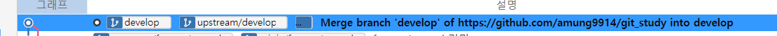 - git merge upstream/develop feature/#### : upstream의 develop 소스를 작업중인 feature 브랜치에 merge