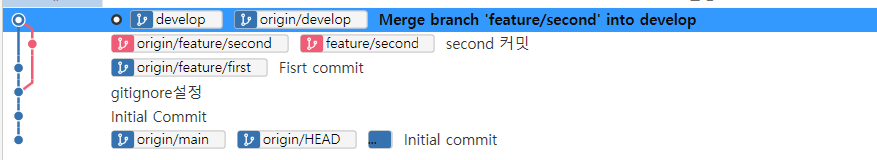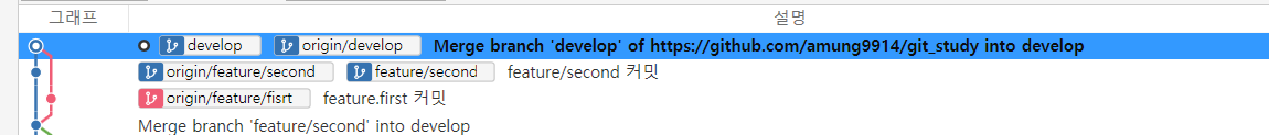 그 후 develop브랜치에서 feature/second를 머지했습니다.
